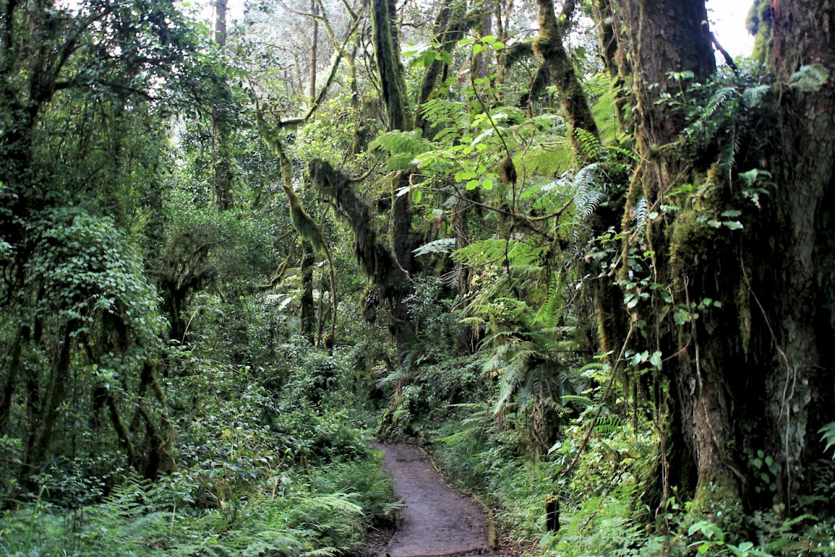 Nach dem Frühstück werden Sie von uns am Hotel abgeholt. Ihr nicht benötigtes Gepäck können Sie sicher im Hotel zur Verwahrung abgeben. Mit Ihrem Bergführer fahren Sie dann zum Machame Gate, von wo aus Ihre Kilimandscharo-Besteigung beginnt. Nach Ihrer Registrierung wird das Gepäck an die Träger übergeben. Die heutige Etappe führt uns vom Machame Gate (1.800 m) bis zum Machame Camp. Der Weg beginnt auf einer breiten ehemaligen Forststraße. Nach einer Stunde jedoch beginnt der eigentliche Pfad, welcher uns hinein in den dichten tropischen Bergregenwald führt. Die Bäume sind hier von dichten Moospolstern überzogen, lange Flechten hängen von den Ästen herunter und geben dem Wald eine mystische Atmosphäre. Nach etwa der Hälfte der Tagesetappe nimmt die Steigung stark zu und der Weg ist nicht mehr ganz so bequem wie noch am Anfang. Kurz bevor wir unser Camp erreichen, lichtet sich der Wald und Sie betreten die Heide- und Moorzone des Berges. Im Camp angekommen, können Sie sich ausruhen und ein leckeres Abendessen genießen.