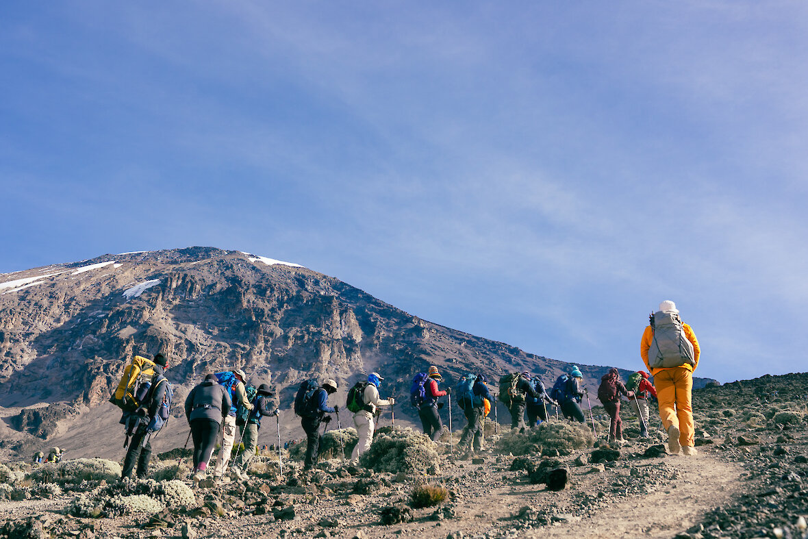 Ab heute führt der Pfad nur noch steil bergauf. Während die Vegetation dabei immer spärlicher wird, genießen Sie grandiose Ausblicke auf den Mount Meru, den Mawenzi und natürlich dem Kibo. Die letzte Übernachtung in großer Höhe erfolgt im Barafu Camp.