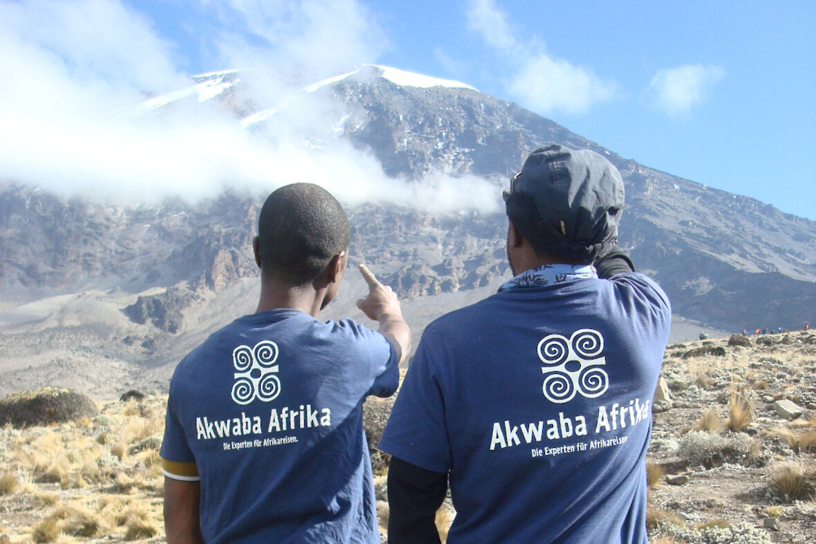 Mit Blick und Zeigefinger zum Kilimandscharo gerichtet