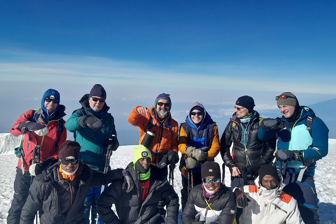 Bereits kurz nach Mitternacht brechen wir auf zum Gipfelsturm, um den wunderschönen Sonnenaufgang am Gillmans Point auf 5.715 Meter zu erleben. In Serpentinen schlängelt sich der Weg von hier steil bergauf. Der Gipfel ist markiert durch eine beflaggte Eisenstange, einer Tafel mit der Freiheitserklärung von Tansania und einer Kiste für das Gipfelbuch. Auf dem Gipfel angekommen, können Sie den überwältigenden Rundblick vom Kilimandscharo ausgiebig in sich aufsaugen. Danach erfolgt der Abstieg zunächst über die Kibo Hütte, wo Sie eine kleine Pause einlegen können und anschließend weiter zur Horombo Hütte gehen.