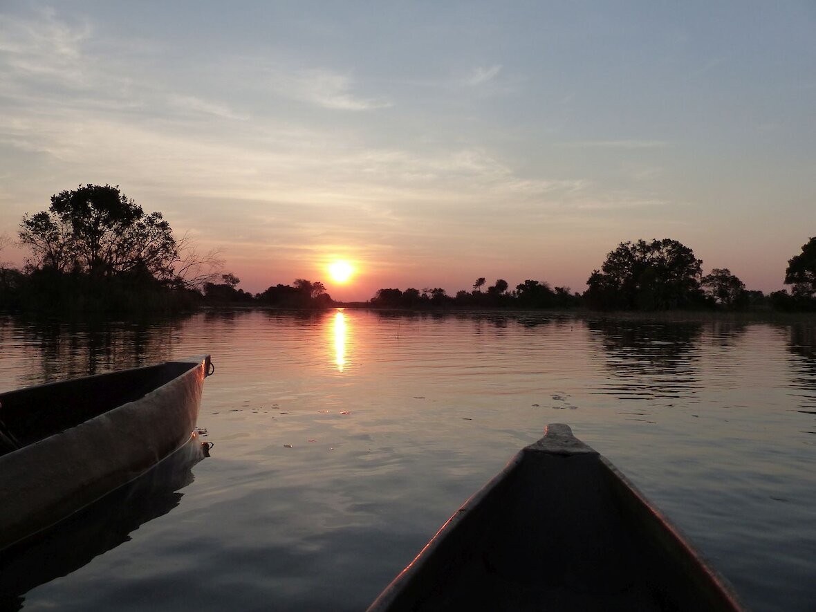 Nach einem frühen Frühstück bringt uns unser Guide nach Maun, wo wir Getränke für den Rest unserer Safari einkaufen können. Anschließend geht es zum südlichen Zipfel des Okavango-Deltas zum Gomoti-Fluss, wo uns die einheimischen „Poler“, die Fahrer der traditionellen Mokoro-Einbaumboote, begrüßen und uns tiefer in das Herz des Deltas bringen werden. Mokoros werden die traditionellen, aus einem Stück geschnitzten Boote genannt, welche perfekt für das umweltschonende Navigieren im Delta geeignet sind. Auf der nahezu lautlosen Fahrt entlang der von Gräsern gesäumten Wasserwege und Flutebenen können wir die Natur hautnah genießen. Auf einer geeigneten Insel schlagen wir dann unser Lager auf. Das benötigte Gepäck für die kommenden Tage auf der Insel wird ebenfalls per Mokoro transportiert. Für Sicherheit ist gesorgt und so können wir ganz beruhigt schlafen, wenn die Geräusche der Flusspferde oder der Hyänen nachts an unser Ohr dringen.
