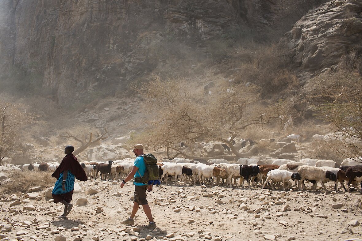 Am Fuß der beeindruckenden Gol-Berge gelegen, öffnet sich Ihr Camp nach Osten – der perfekte Ort, um einen spektakulären Sonnenaufgang zu erleben. Noch bevor die Sonne über den Horizont steigt, wird Ihnen am Lagerfeuer frisch gebrühter Kaffee gereicht. Nach einem kräftigenden Frühstück brechen Sie gemeinsam mit Ihren Massai-Guides zu einer Wanderung entlang der Sanjan-Schlucht auf. Der Weg führt über felsiges Terrain, daher sind gute Wanderschuhe unerlässlich. Immer wieder lohnt sich ein Blick zurück – die Aussicht auf das Rift Valley ist schlicht atemberaubend.