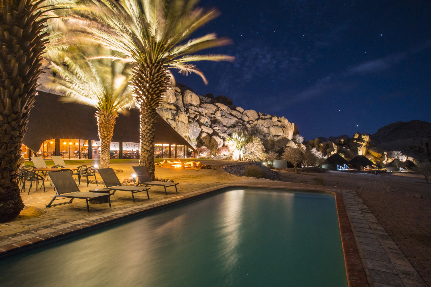 Die Ai Aiba Rock Lodge liegt am Fuß der Erongo‑Berge und fügt sich harmonisch in eine Landschaft aus massiven Granitfelsen, offenen Ebenen und lichtem Buschwald ein. Die außergewöhnliche Lage in einem weitläufigen Schutzgebiet verleiht der Lodge eine besondere Atmosphäre, die zugleich ruhig, kraftvoll und inspirierend wirkt. Die Architektur greift Formen und Farben der Felsenwelt auf, sodass die Anlage wie ein natürlicher Bestandteil der Umgebung erscheint. Auf dem Gelände befinden sich insgesamt zwanzig luxuriöse Bungalows. Die Doppelzimmer sind stilvoll eingerichtet und verbinden modernes Design mit Elementen, die sich an der umliegenden Gebirgslandschaft orientieren. Große Fensterfronten lassen viel Licht herein und öffnen den Blick auf die Felsformationen. Die Bäder sind großzügig gestaltet und bieten hochwertigen Komfort. Jede Unterkunft verfügt über ausreichend Privatsphäre, sodass Sie die Ruhe der Natur in vollen Zügen genießen können. Der zentrale Lodgebereich umfasst Restaurant, Lounge und eine charmante Bar. Ein kleiner grüner Garten schafft eine angenehme, luftige Atmosphäre, die von einem erfrischenden Außenpool ergänzt wird. Von den Terrassen und Sitzbereichen aus genießen Sie eindrucksvolle Panoramablicke in die Weite der Erongo‑Region. Besonders am späten Nachmittag, wenn das Licht die Felsen warm färbt, entsteht hier eine beeindruckende Stimmung. Die Ai Aiba Rock Lodge bietet verschiedene Aktivitäten an, die Ihnen die Natur- und Kulturlandschaft näherbringen. Auf Pirschfahrten können Sie Tierarten wie Giraffen oder Zebras beobachten. Eine geführte Buschwanderung ist ebenfalls sehr empfehlenswert. Sie führt zu uralten Felsmalereien und vermittelt spannende Einblicke in die Geschichte dieser Region. Die Ai Aiba Rock Lodge ist ein idealer Ort für Reisende, die Ruhe, Naturerlebnis und ein stimmiges Design schätzen – ein Platz, an dem Landschaft und Architektur eine harmonische Einheit bilden.