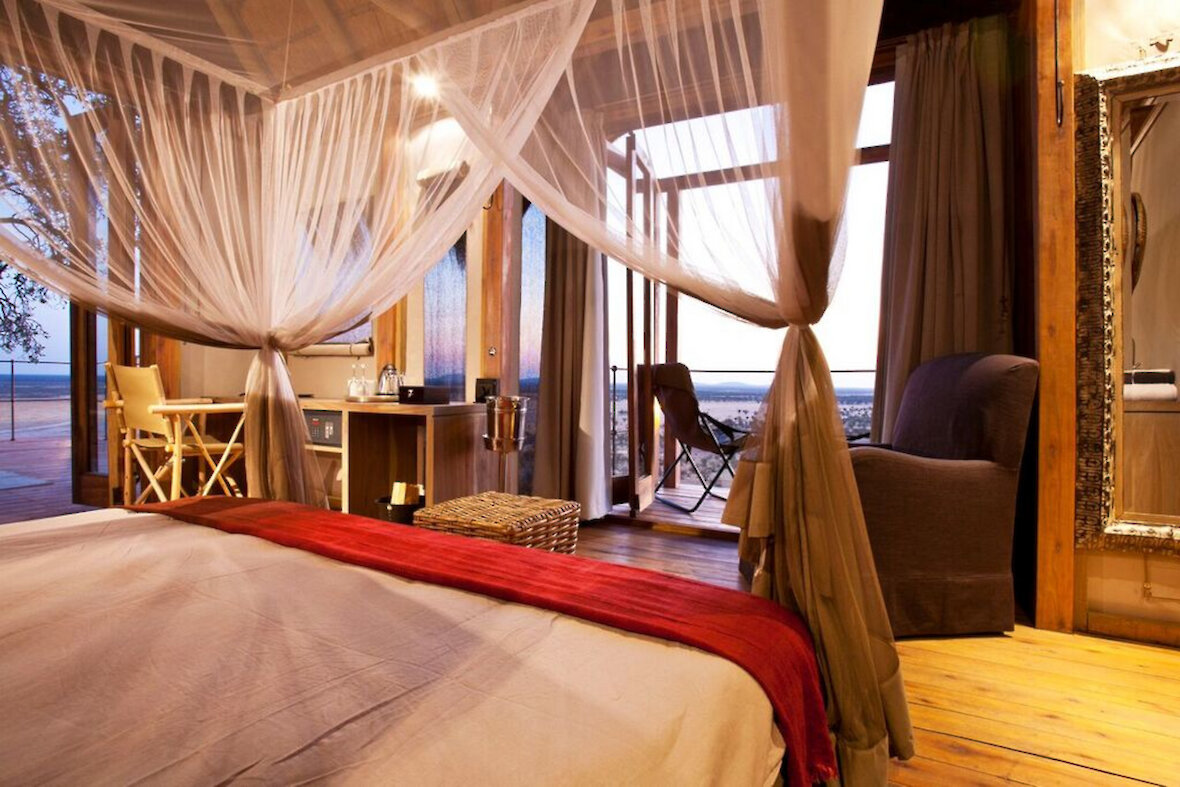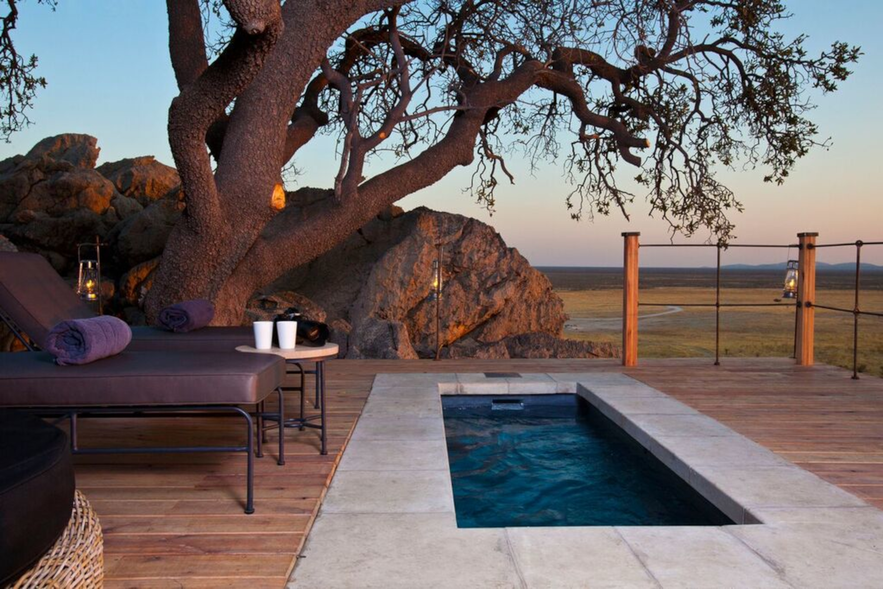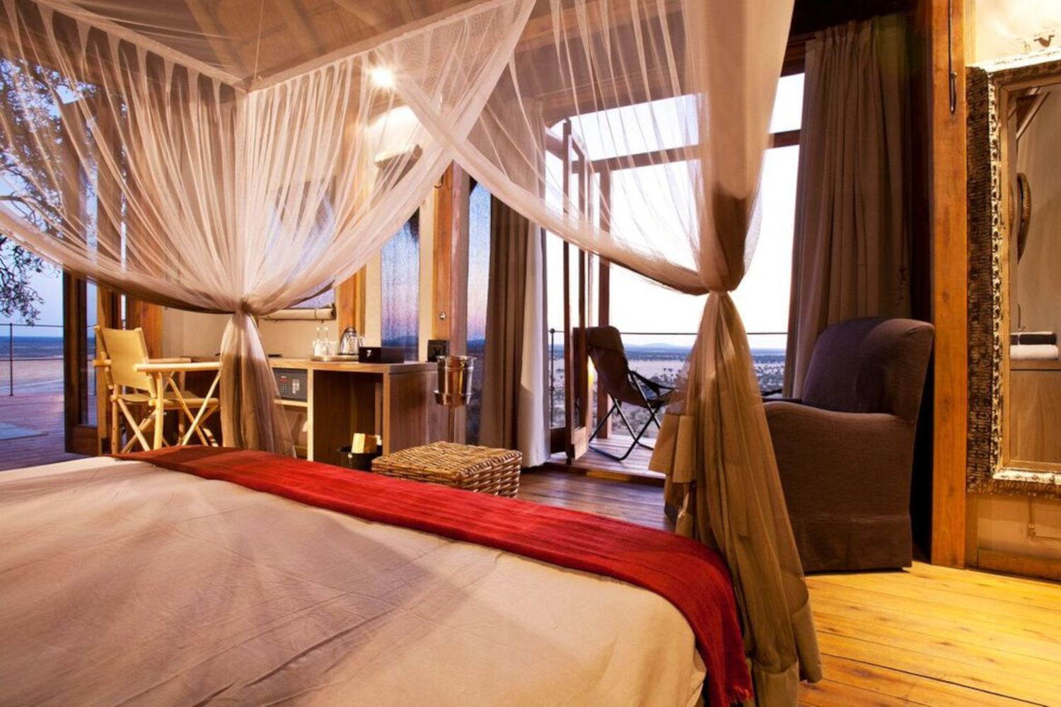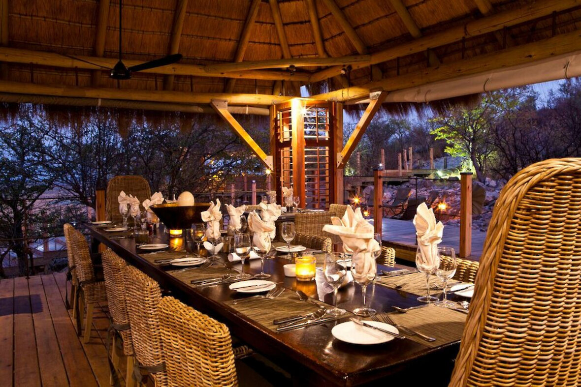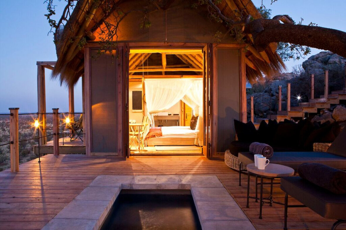 Das Dolomite Camp liegt auf einem Höhenzug aus hellem Dolomitgestein im westlichen Teil des Etosha-Nationalparks. Dieser Bereich des Parks war über Jahrzehnte nur begrenzt zugänglich und konnte sich weitgehend ohne äußere Eingriffe entwickeln. Dadurch sind hier Tierarten zu finden, die in anderen Regionen des Parks seltener auftreten. Besonders bekannt ist dieser Abschnitt für Sichtungen von Spitzmaulnashörnern und anderen scheuen Wildtieren, die von den weiten Ebenen und der geringen Besucherzahl profitieren. Die Unterkunft besteht aus großen, komfortabel ausgestatteten Zelthäusern, die harmonisch in die Felsenlandschaft eingebettet sind. Die erhöhte Lage jedes Zeltes bietet Ihnen eine beeindruckende Aussicht über die Weite des Nationalparks. Die Innenräume sind hell und großzügig gestaltet. Eine private Veranda lädt dazu ein, die Landschaft in aller Ruhe zu beobachten – sei es beim ersten Licht des Tages oder in den warmen Abendstunden. Das Hauptgebäude des Camps fügt sich ebenfalls in den Felsenhang ein und umfasst Restaurant, Lounge‑Bereiche und eine Terrasse mit weitem Blick. Ein Pool bietet eine wohltuende Abkühlung an heißen Tagen. Das Camp wurde so angelegt, dass es möglichst wenig in die natürliche Umgebung eingreift, wodurch eine ruhige, naturverbundene Atmosphäre entsteht. Geführte Pirschfahrten sind ein zentraler Bestandteil des Aufenthalts. Erfahrene Ranger führen Sie zu wenig besuchten Regionen des westlichen Etosha und geben Einblicke in das Verhalten und den Lebensraum der Tiere. Die Kombination aus landschaftlichem Reiz, Abgeschiedenheit und hoher Artenvielfalt macht das Dolomite Camp zu einem besonderen Ort für alle, die Etosha jenseits der üblichen Routen erleben möchten.