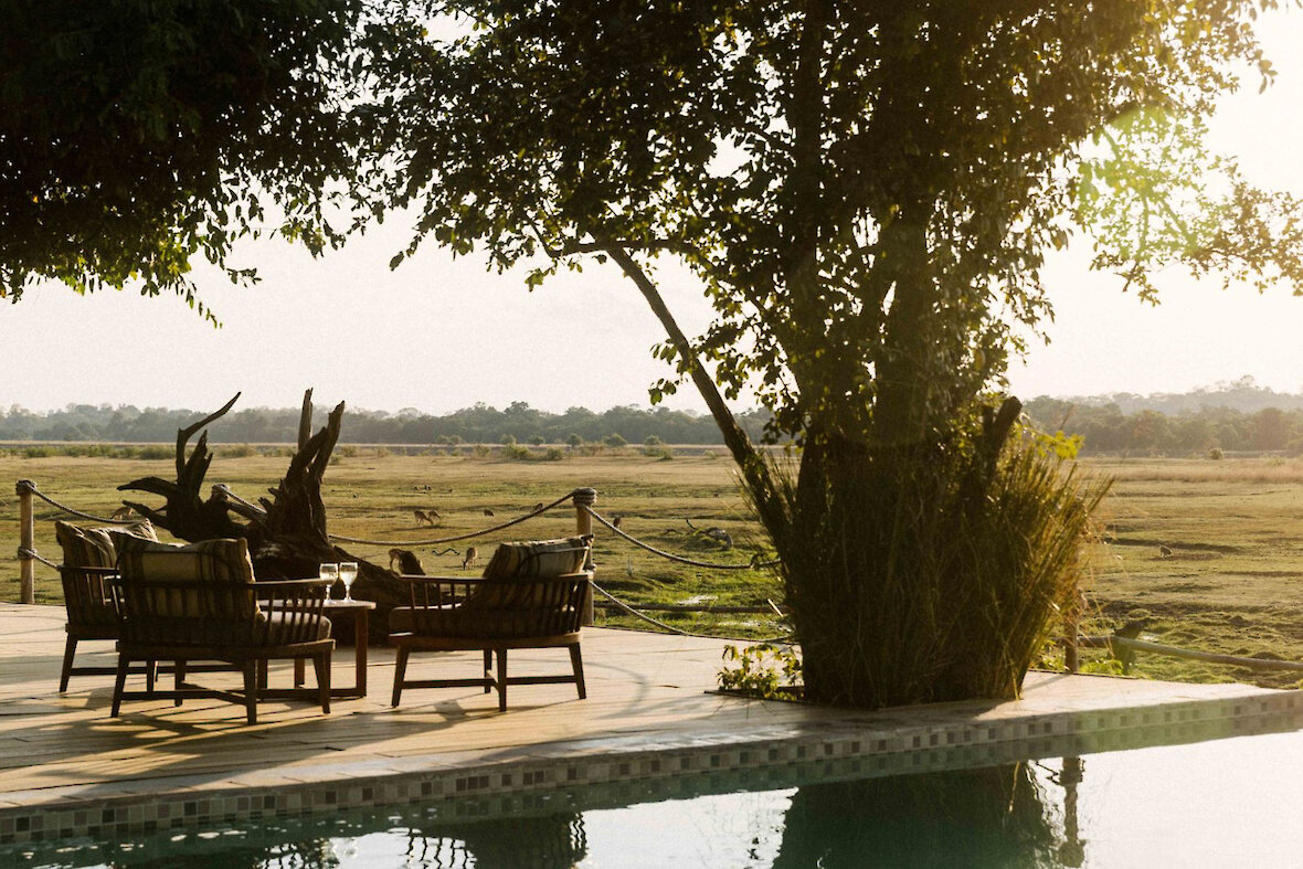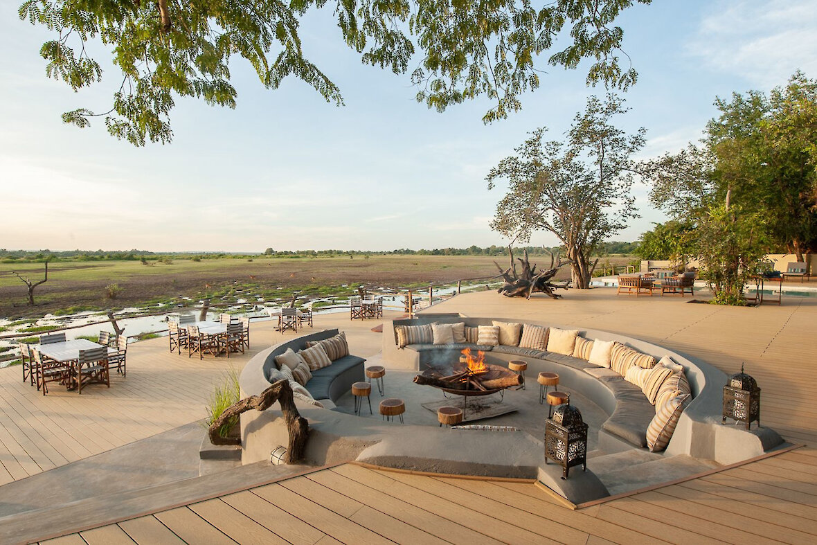 Das Herz der Lodge ist der offene Ess- und Barbereich unter einem alten Mangobaum. Hier genießen Sie Mahlzeiten mit Blick auf den Fluss und den Nationalpark. Ein besonderes Highlight ist der Pool, gespeist von der einzigen natürlichen heißen Quelle des Luangwa-Tals. Mit konstant 38 Grad sorgt sie für wohltuende Entspannung. Für Wellness steht zudem ein kleiner Spa-Bereich bereit.