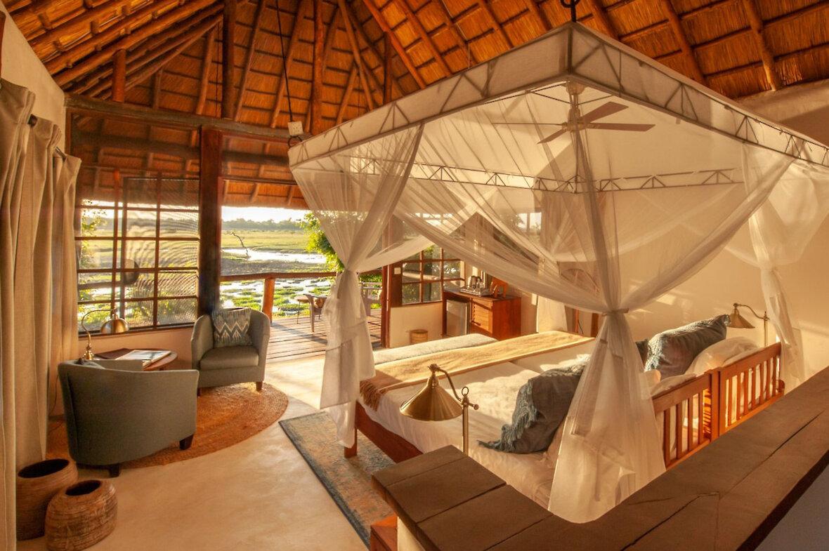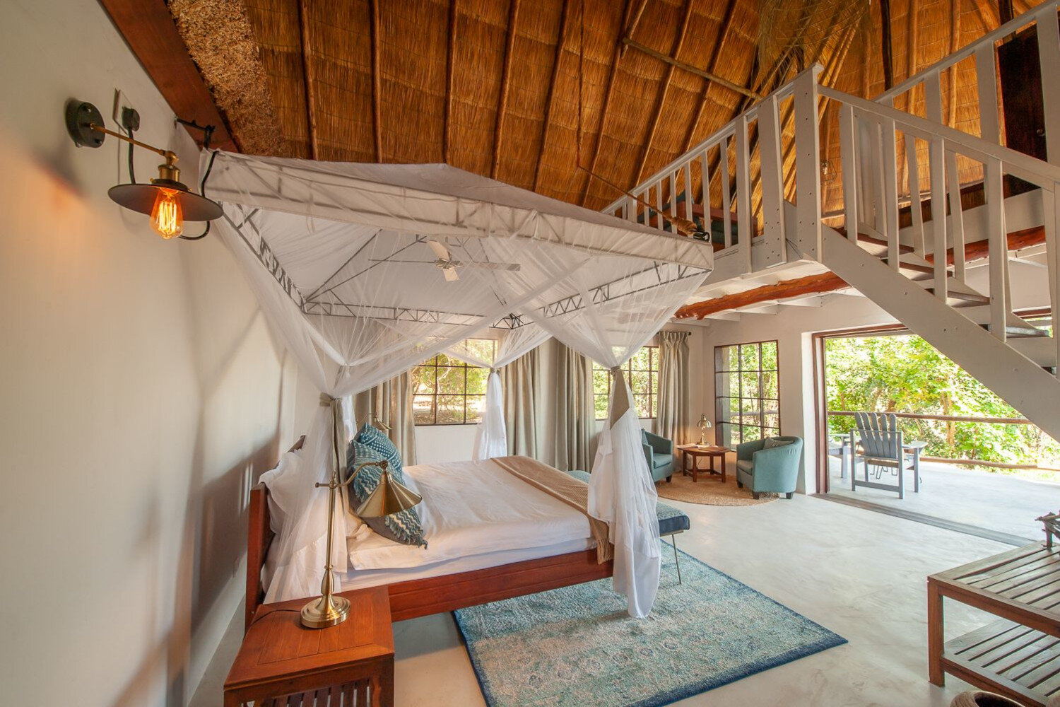 Die Lodge verfügt über acht großzügige Chalets und zwei luxuriöse Suiten, alle mit reetgedeckten Dächern und natürlichen Materialien gestaltet. Jedes Zimmer ist mit eigenem Bad, Moskitonetz, Ventilator und einer privaten Terrasse ausgestattet. Die Suiten bieten zusätzlich eine offene Galerie und freistehende Badewannen – ideal für entspannte Stunden nach einer Pirschfahrt.
