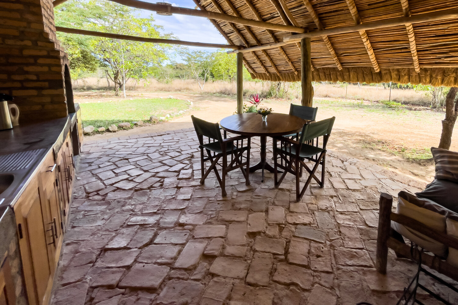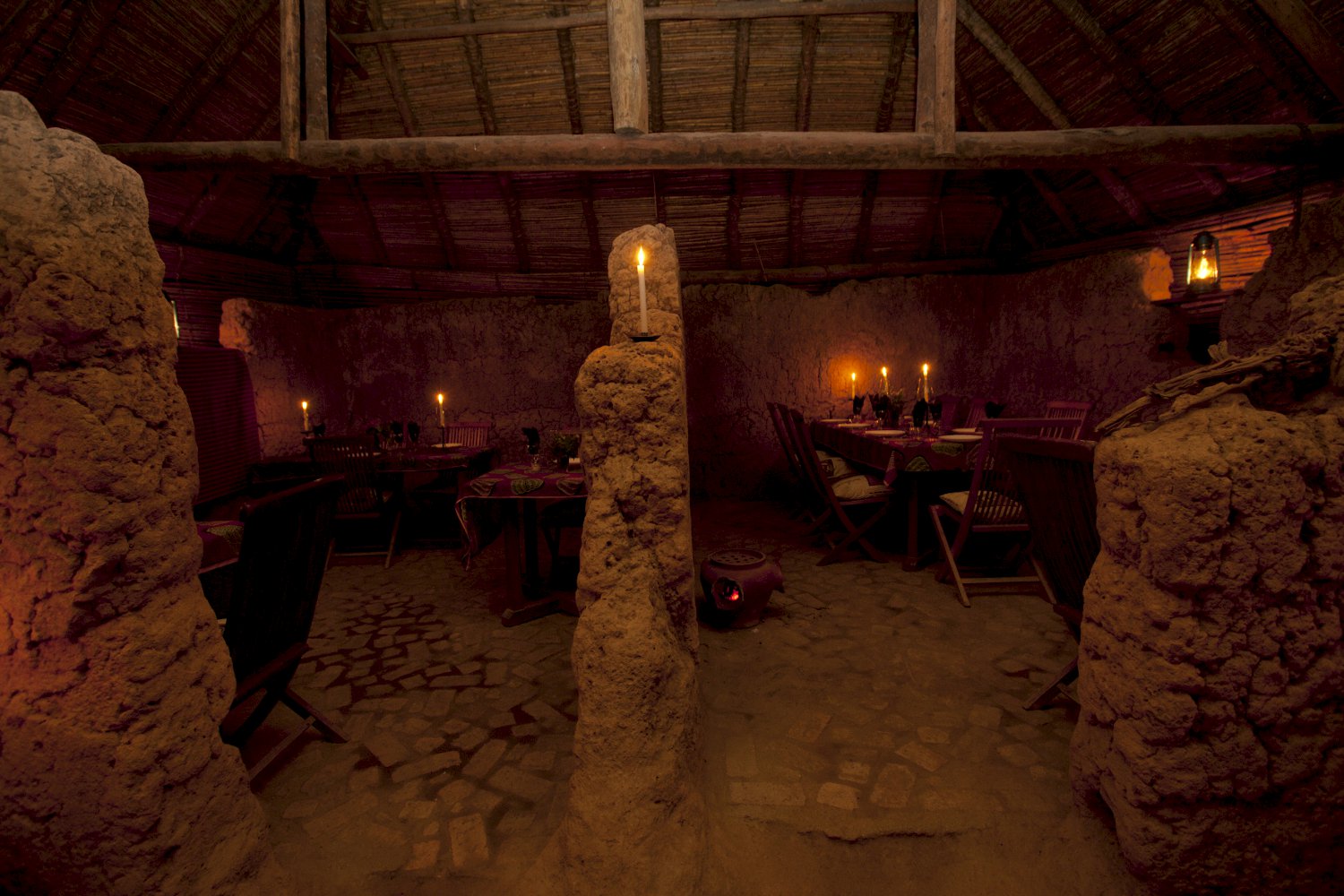 Das Herzstück der Farm ist das „Mud Ruins Restaurant“, ein ehemaliges Lehmbauhaus, das heute als stimmungsvolle Dining-Zone dient. Hier genießen Sie hausgemachte Gerichte aus frischen Zutaten, die direkt aus dem eigenen Anbau stammen. Gemüse, Fleisch und Eier kommen von der Farm, ergänzt durch lokale Spezialitäten. Ein kleiner Shop bietet zusätzlich selbstgebackene Kuchen und Produkte aus der Region.