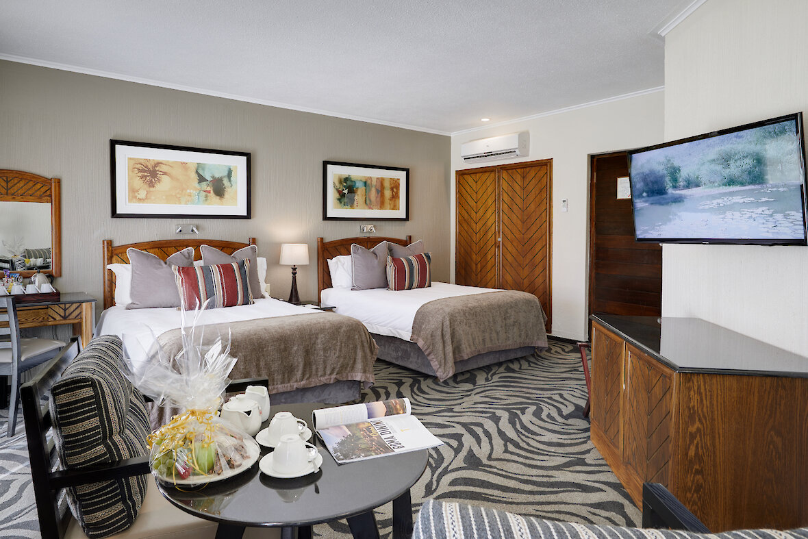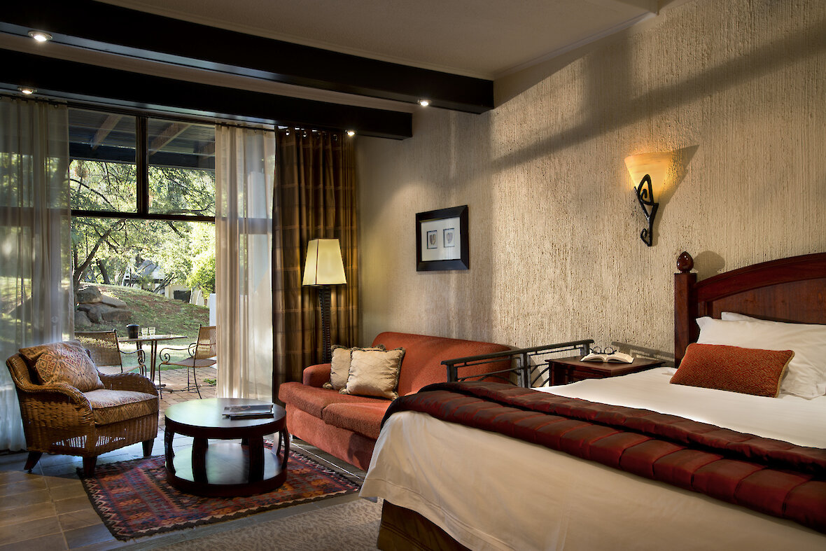 Die Lodge bietet verschiedene Zimmerkategorien, von Standard-Zimmern bis zu luxuriösen Executive-Studios. Alle Zimmer verfügen über Klimaanlage, Bad mit Dusche und Badewanne, Balkon mit Blick ins Grüne sowie moderne Annehmlichkeiten wie WLAN, Safe und Minibar auf Anfrage. Familienzimmer mit Schlafsofa sind ideal für gemeinsame Reisen.