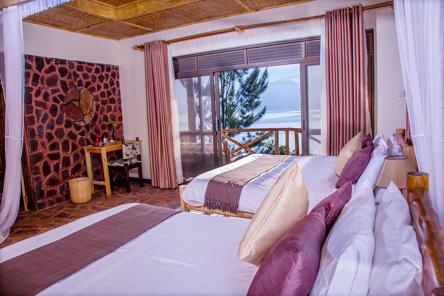 Eingebettet in die malerische Landschaft im Süden Ugandas, nur wenige Kilometer von Kisoro entfernt, liegt die Lake Mulehe Safari Lodge. Diese charmante Unterkunft begeistert mit einem spektakulären Ausblick auf den idyllischen Lake Mulehe und bietet Ihnen eine einzigartige Atmosphäre der Ruhe und Entspannung. Von hier aus erreichen Sie bequem die eindrucksvollen Nationalparks der Region, darunter der weltbekannte Bwindi Impenetrable Nationalpark und der Mgahinga-Gorilla-Nationalpark.