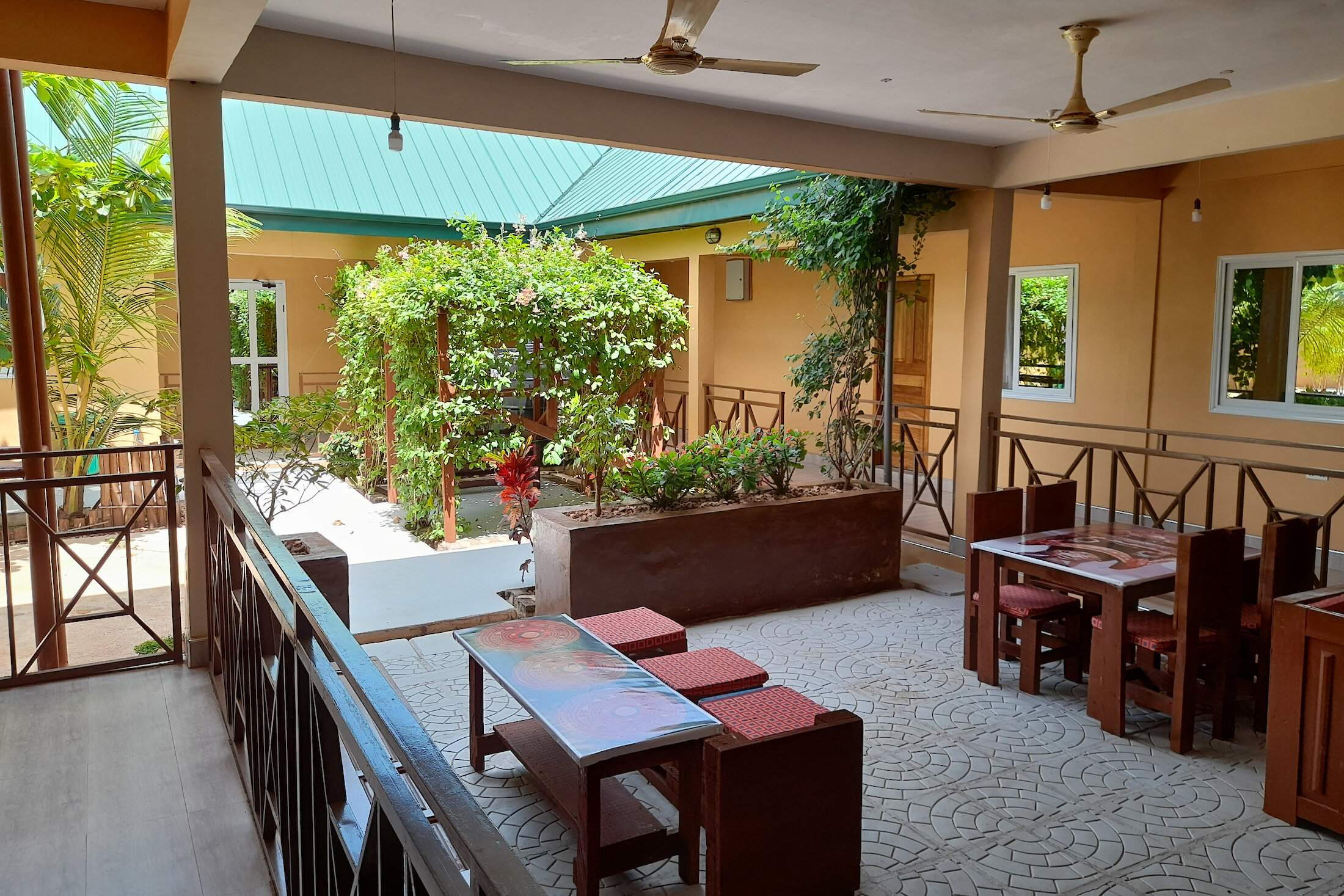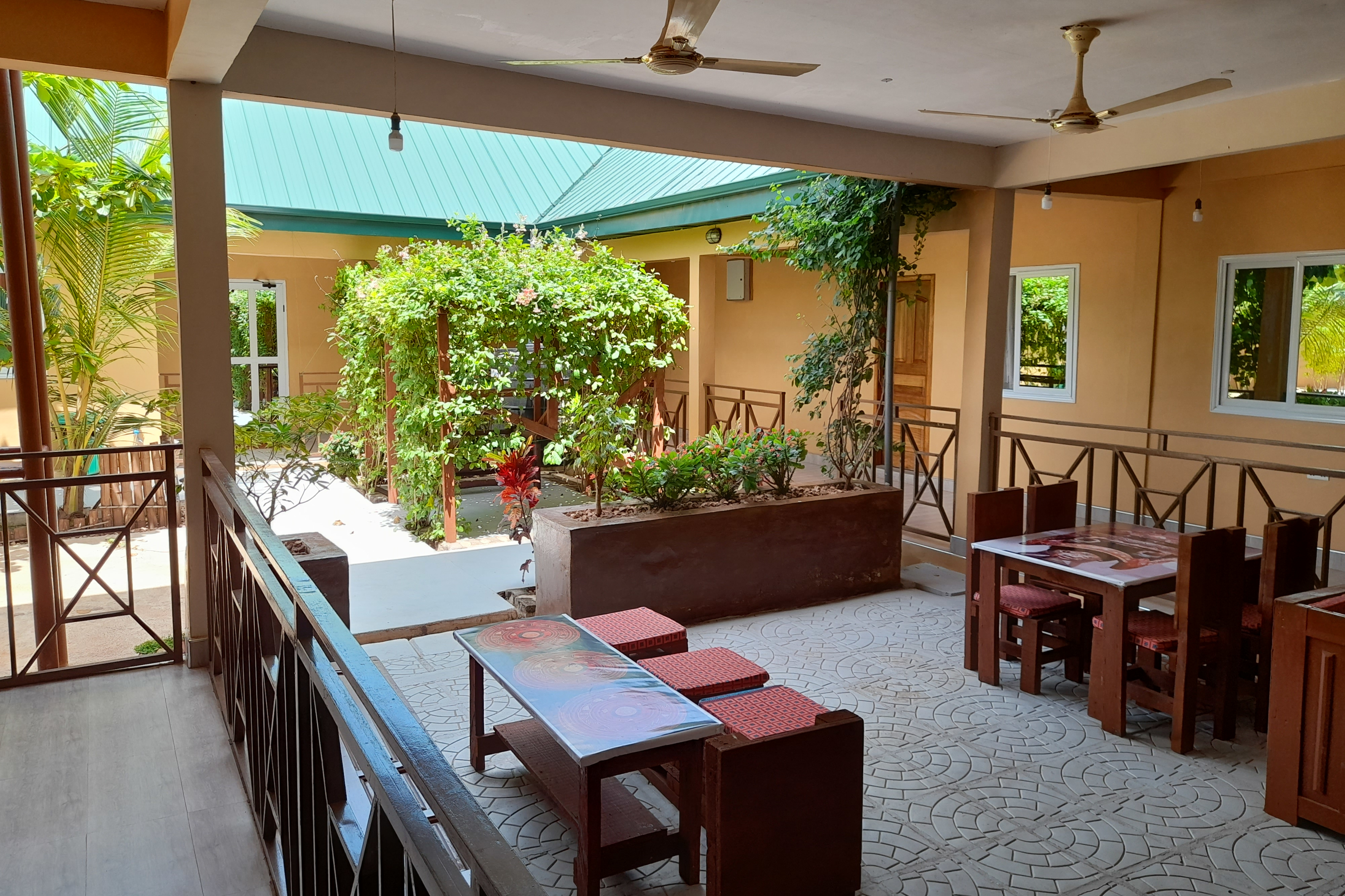 Für Ihr leibliches Wohl sorgt ein kleines Restaurant mit Frühstücksbereich, in dem Ihnen morgens ein frischer Start in den Tag ermöglicht wird. Auch am Abend können Sie einfache, köstliche Speisen genießen, oft mit regionalem Touch. Der schattige Innenhof der Lodge lädt dazu ein, in Ruhe zu essen, zu lesen oder einfach die friedliche Stimmung zu genießen.