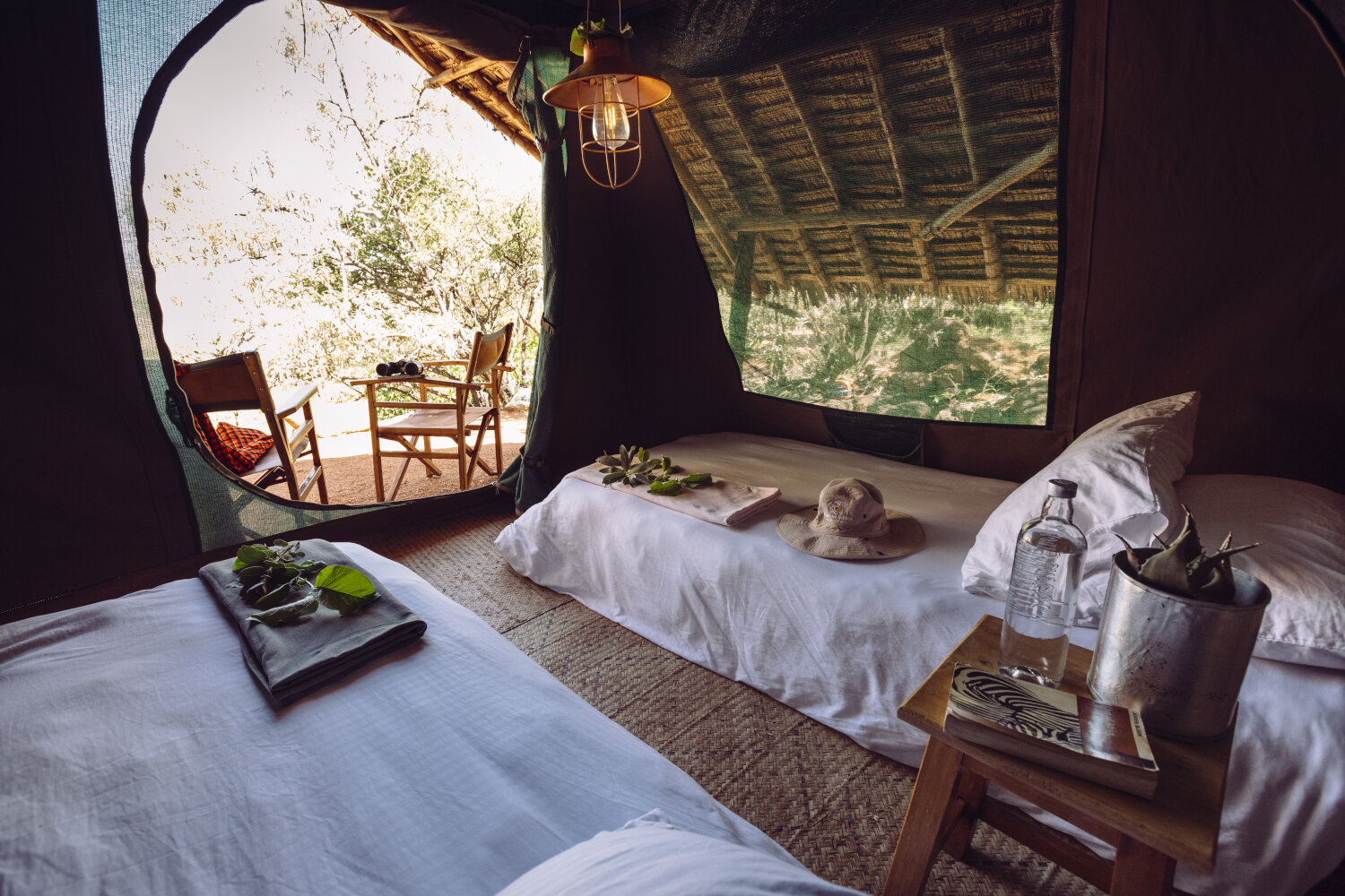Das Camp wird von Angehörigen der lokalen Maasai-Gemeinschaft betrieben und ermöglicht einen respektvollen Einblick in deren Lebensweise. Im Preis sind Vollpension und geführte Aktivitäten enthalten. Sie genießen frisch zubereitete Mahlzeiten mit einer Mischung aus kenianischer und internationaler Küche. Tagsüber entdecken Sie die Umgebung bei Naturwanderungen, Fußpirsch und kulturellen Begegnungen. Sie lernen traditionelle Techniken wie Feuer machen, besuchen eine Manyatta und erfahren mehr über die Bedeutung der Loita-Hügel für die Maasai.