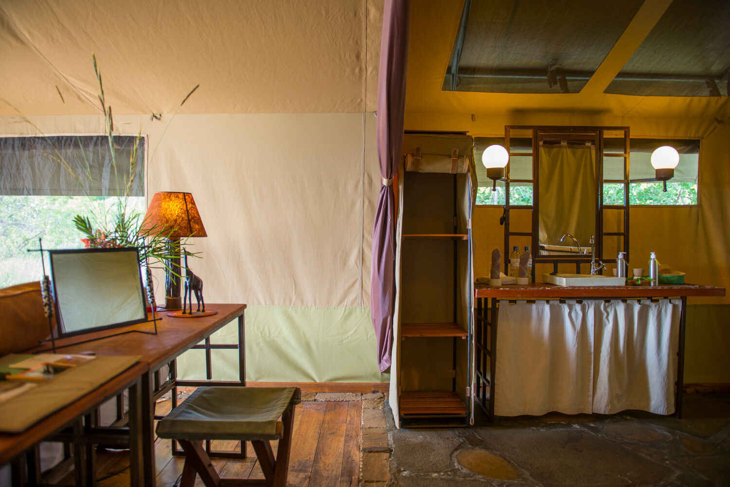 Die Unterkunft kombiniert Komfort mit Nachhaltigkeit. Insgesamt 15 großzügige Safarizelte – zwölf Classic- und drei Deluxe-Zelte – bieten ein authentisches Erlebnis ohne Verzicht auf Annehmlichkeiten. Jedes Zelt verfügt über eine private Veranda, ein eigenes Bad mit Warmwasserdusche und moderne Ausstattung. Die Deluxe-Zelte sind besonders geräumig und eignen sich ideal für Familien oder kleine Gruppen. Für Paare gibt es ein romantisches Flitterwochen-Zelt mit großer Holzterrasse und Panoramablick.