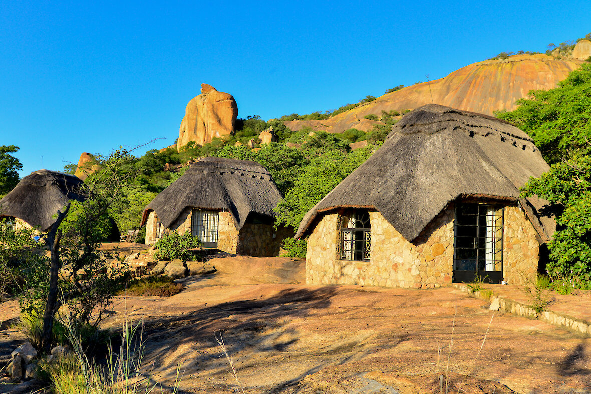 Die Matobo Hills Lodge in Simbabwe liegt inmitten der eindrucksvollen Granitlandschaften des Matobo Nationalparks und zählt zu den außergewöhnlichsten Unterkünften des Landes. Die Lodge fügt sich harmonisch in die uralte Felslandschaft ein, sodass Sie direkt von Ihrem Chalet aus die magische Ruhe und Weite der Natur erleben. Die Region ist UNESCO‑Welterbe und bekannt für ihre archaischen Felsformationen, spirituellen Stätten und eine der dichtesten Populationen von Nashörnern im südlichen Afrika.