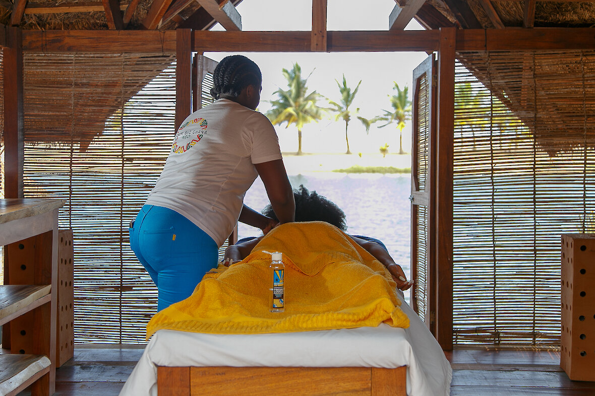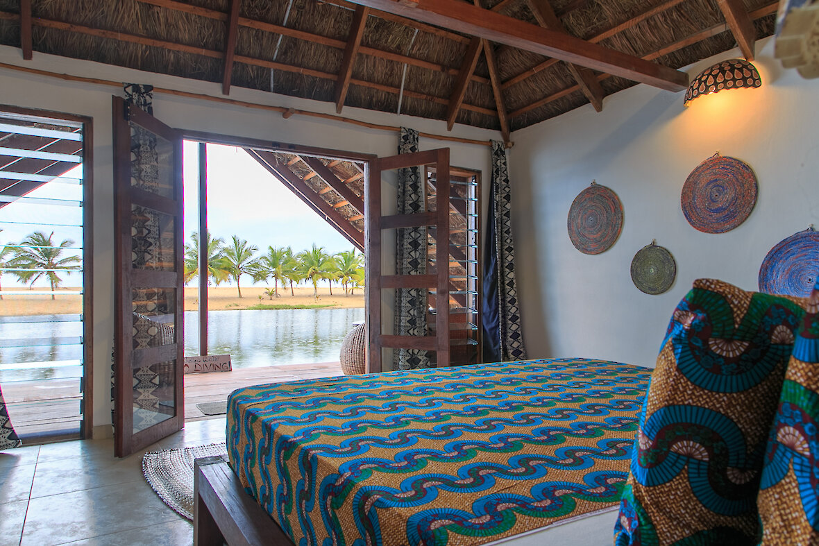 Die Atmosphäre der Lodge ist von Achtsamkeit und Einfachheit geprägt. Hier gibt es kein WLAN, keine Fernseher und keine Klimaanlagen – stattdessen erwartet Sie eine entspannte Umgebung, in der Sie sich auf das Wesentliche besinnen können. Das Einschlafen zu den Geräuschen der Wellen und das Aufwachen zu den traditionellen Gesängen lokaler Fischer gehören zu den besonderen Erlebnissen, die Ihren Aufenthalt bereichern. Die Unterkünfte sind liebevoll gestaltet und in die Natur integriert. Verschiedene Zimmerkategorien bieten Komfort und Charme, viele mit Blick aufs Meer oder den hauseigenen Salzwasser‑Lagoon, der auch zum Schwimmen geeignet ist. Die Lodge verfügt über solarbetriebene Außenbäder, kleine Rückzugsorte in einem üppigen Garten sowie zahlreiche gemütliche Sitzgelegenheiten, die zum Entspannen einladen.