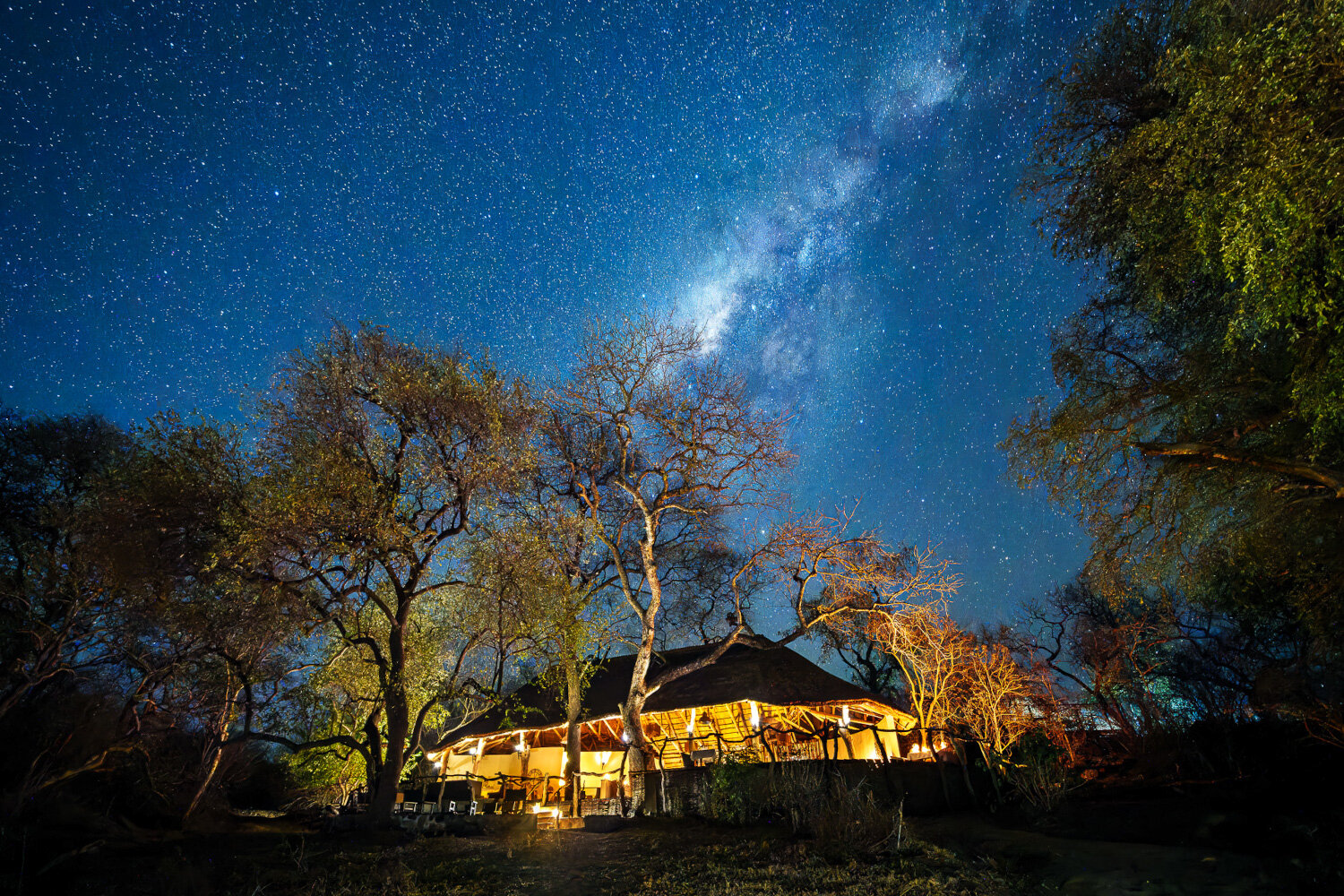 Die Lodge besteht aus acht großzügigen, luxuriösen Chalets, die perfekt in die Landschaft eingebettet sind. Große Fensterfronten, natürliche Materialien und liebevoll gestaltete Details schaffen eine Atmosphäre, die offen, elegant und naturverbunden zugleich ist. Jedes Chalet verfügt über ein weitläufiges Schlafzimmer, eine private Terrasse mit Blick auf den Shire River, ein en-suite Badezimmer sowie eine Außendusche – ein idealer Ort, um den Geräuschen der Wildnis bei Sonnenaufgang zu lauschen.