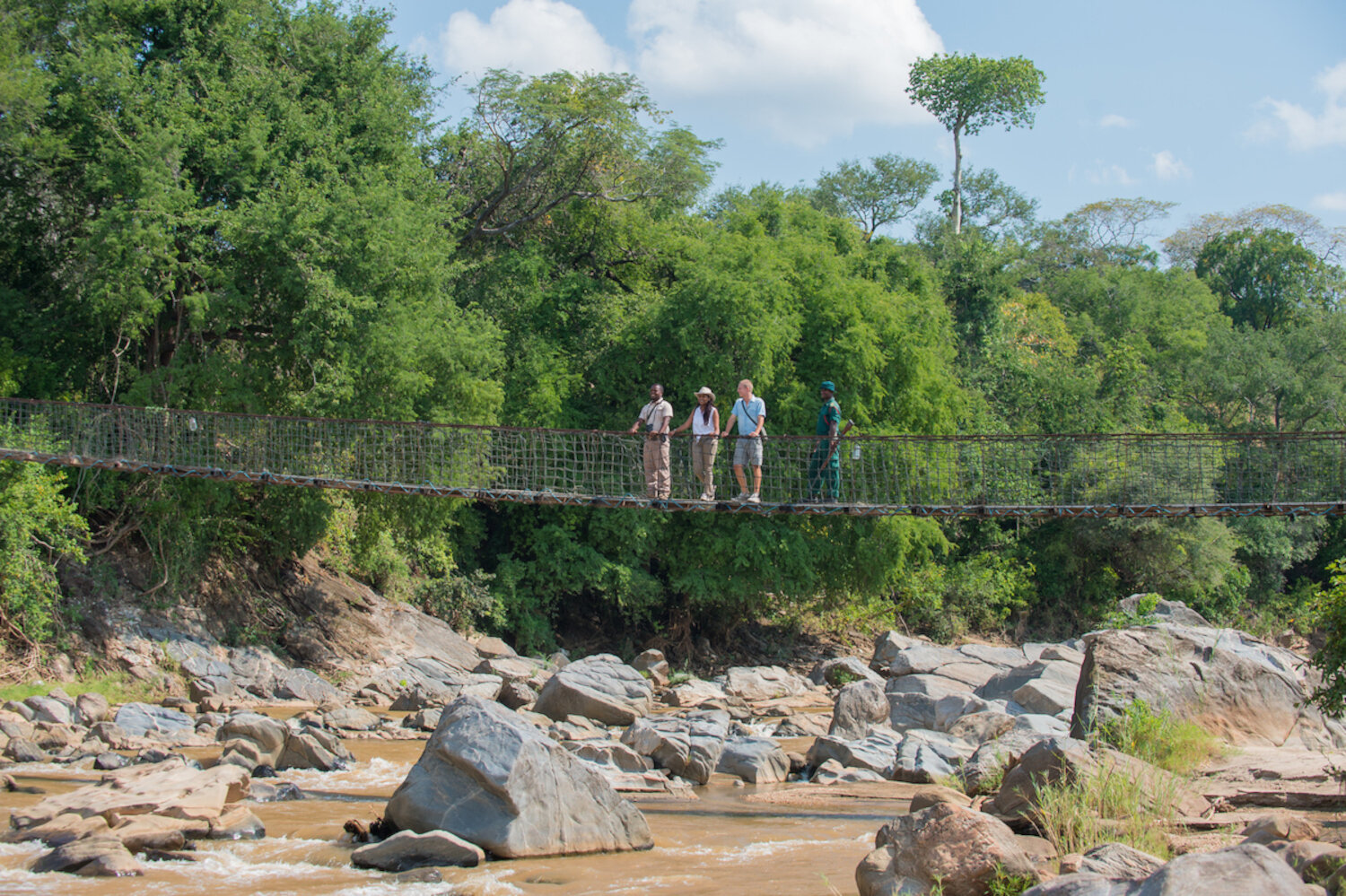 Die Mkulumadzi Lodge liegt im Majete Wildlife Reserve, einem der beeindruckendsten Natur- und Schutzgebiete Malawis. Umgeben von dichten Miombo-Wäldern, felsigen Granithügeln und weitläufigen Flusstälern bietet die Lodge eine exklusive Kombination aus Abgeschiedenheit, Komfort und intensiven Safari-Erlebnissen. Bereits der Weg zur Lodge – über eine kleine Hängebrücke, die den Mkulumadzi River überspannt – vermittelt das Gefühl, in ein unberührtes Naturparadies einzutreten.