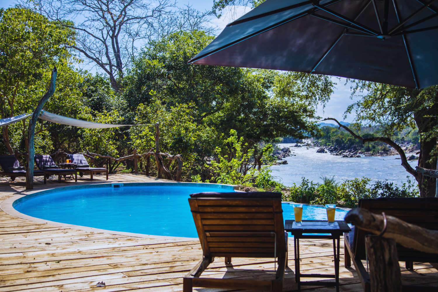 Der Hauptbereich umfasst Lounge, Restaurant, Bar und eine große Panoramaterrasse, die sich über dem Fluss öffnet. Hier genießen Gäste kreative, frisch zubereitete Menüs, entspannte Nachmittage oder stimmungsvolle Abende am Lagerfeuer. Ein Swimmingpool mit Blick ins Flusstal rundet das Angebot ab und bietet an heißen Tagen wohltuende Erfrischung.