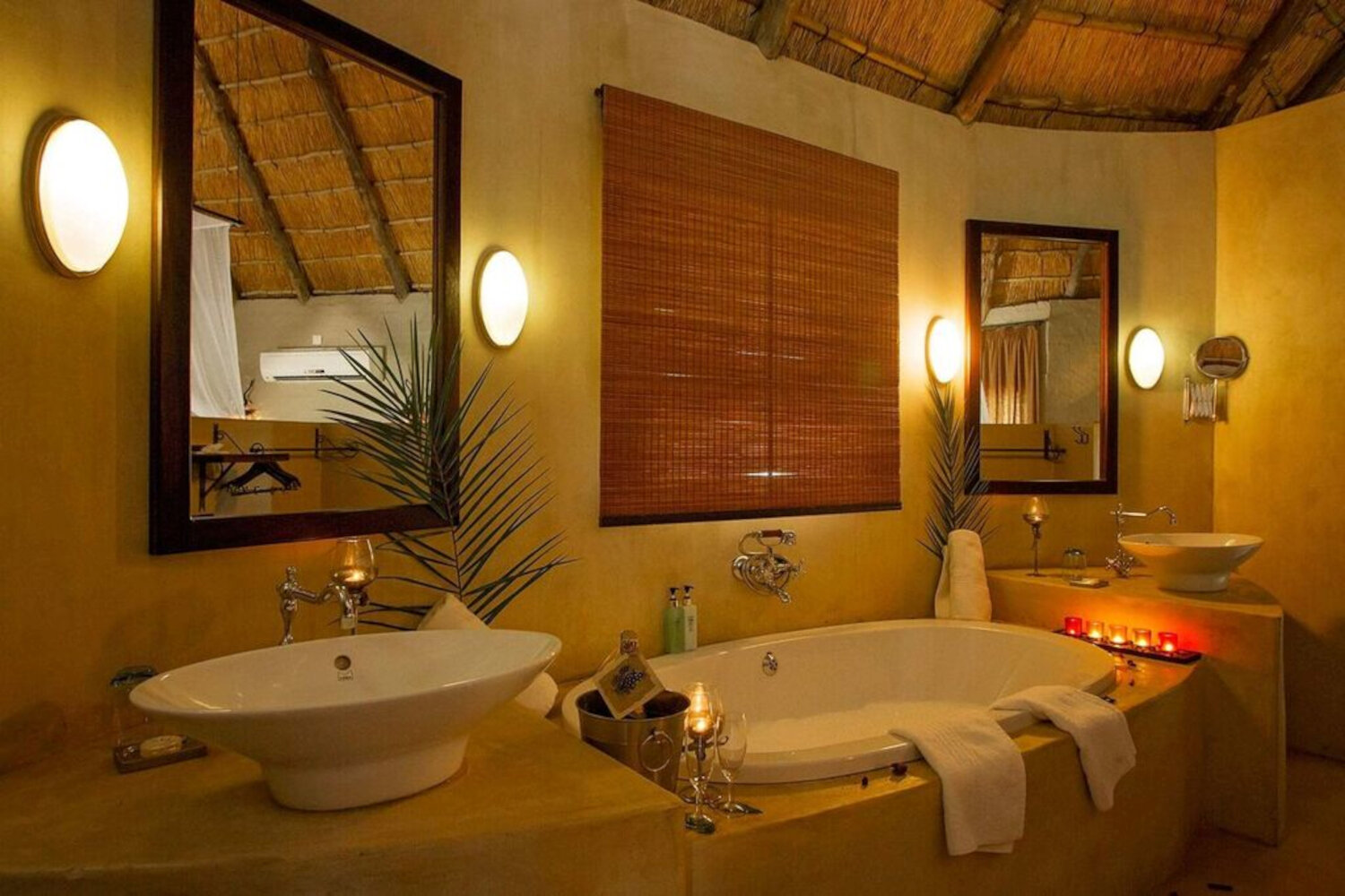 Der Hauptbereich der Lodge umfasst ein offenes Restaurant, eine gemütliche Lounge, eine Bar sowie verschiedene Terrassen, die allesamt darauf ausgelegt sind, die spektakulären Ausblicke einzufangen. Ein zentraler Swimmingpool bietet eine erfrischende Pause zwischen den Safariaktivitäten, während Feuerstellen und stimmungsvolle Beleuchtung die Abende besonders magisch machen.