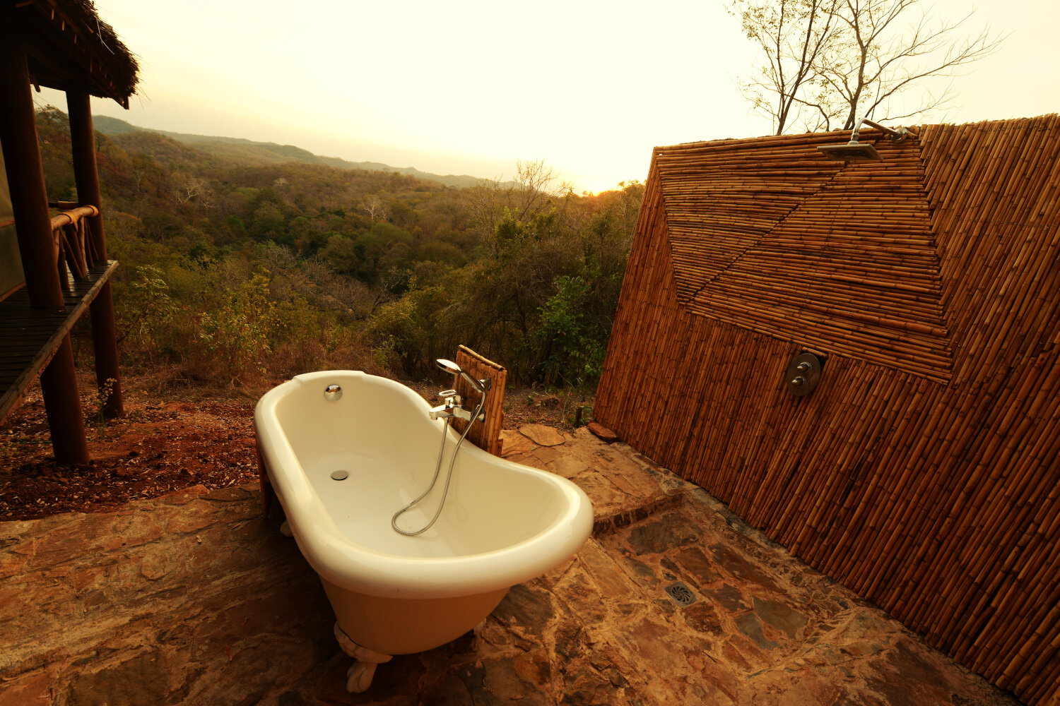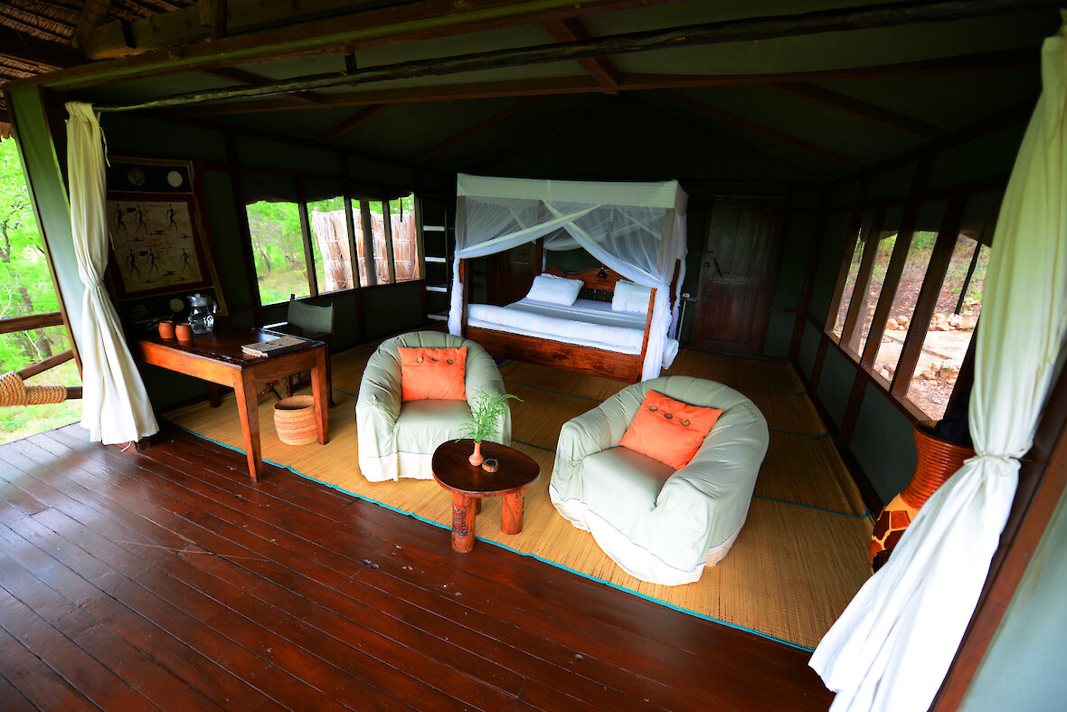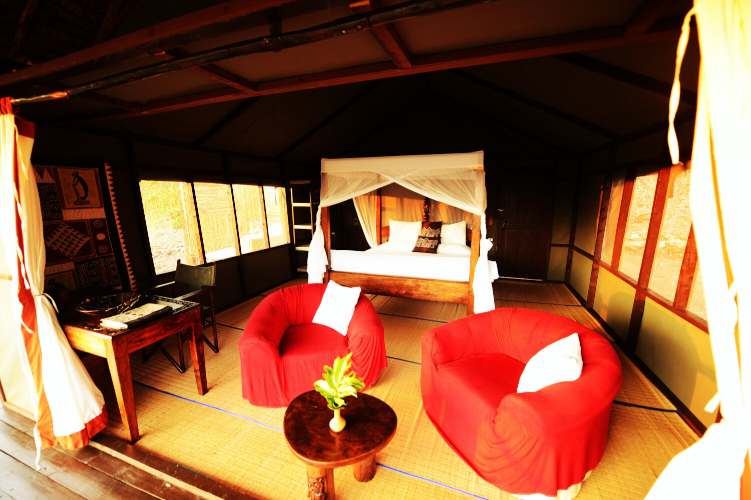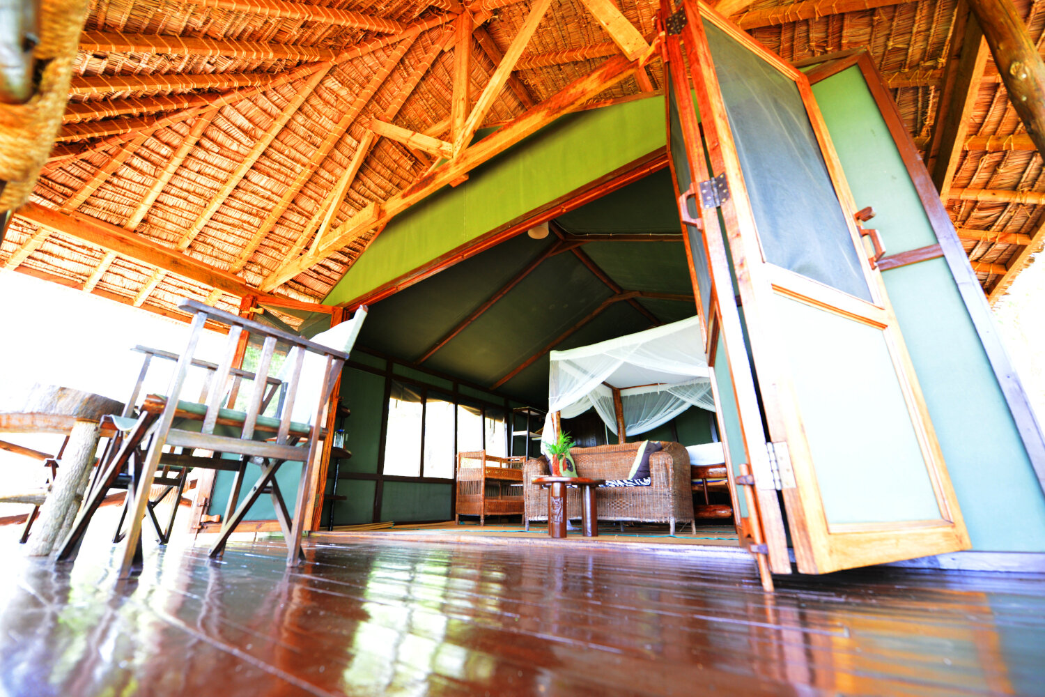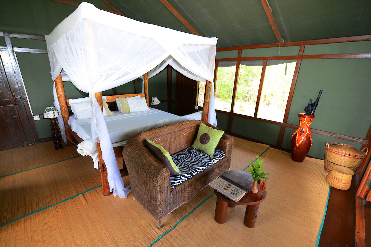 Untergebracht sind Sie in acht großzügigen Steincottages und vier offen gestalteten Zeltunterkünften. Alle Wohneinheiten sind nach vorne geöffnet und erlauben freie Sicht in die umgebende Natur. Morgens dringt das Licht sanft durch Moskitonetze und Holzstrukturen, abends begleiten die Geräusche der Tierwelt den Tagesausklang. Die Ausstattung ist komfortabel, reduziert und hochwertig. Jedes Zimmer verfügt über ein eigenes Badezimmer mit Warmwasser. Einige Suiten sind zusätzlich mit freistehenden Badewannen ausgestattet, die ein Bad mit Aussicht ermöglichen.