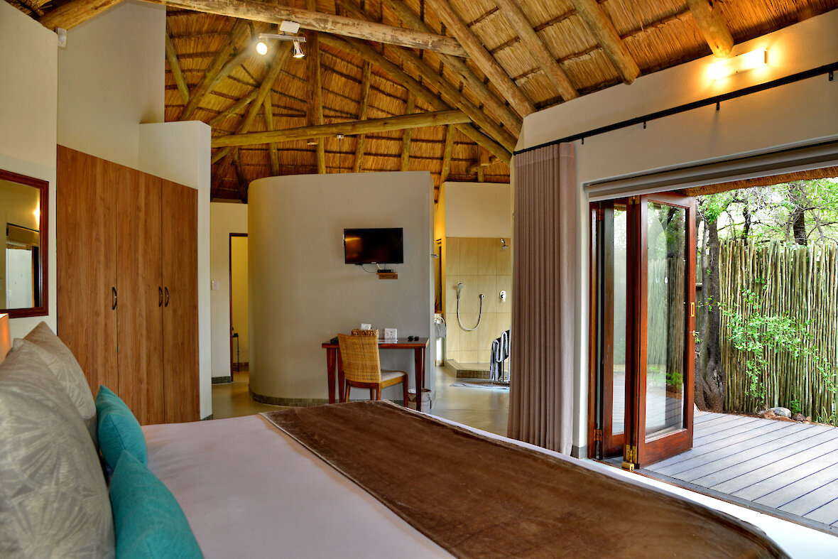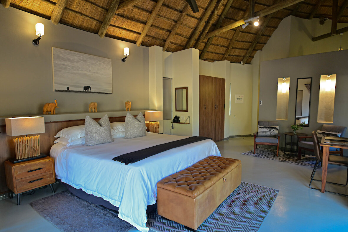 Sie übernachten in einer der fünf luxuriösen Suiten, die modernen Komfort mit afrikanischem Flair verbinden. Jede Suite verfügt über ein Kingsize-Bett, ein elegantes Badezimmer mit Innen- und Außendusche, Badewanne und Doppelwaschbecken. Auf Ihrer privaten Terrasse genießen Sie die Ruhe des Busches. Klimaanlage, WLAN und ein Bar-Kühlschrank sorgen für zusätzlichen Komfort.