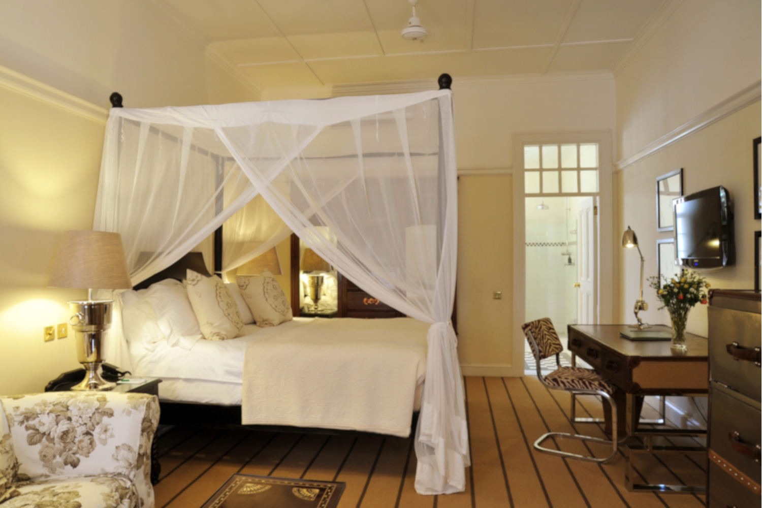 Für Ihr Wohlbefinden sorgen ein großzügiger Pool im Edwardianischen Stil, ein luxuriöses Spa sowie ein Beauty- und Friseursalon. Kunstliebhaber finden in der hauseigenen Galerie Inspiration, während Aktive den privaten Pfad nutzen, der direkt vom Garten in den Regenwald rund um die Victoriafälle führt. So sind Natur und Abenteuer nur wenige Schritte entfernt.