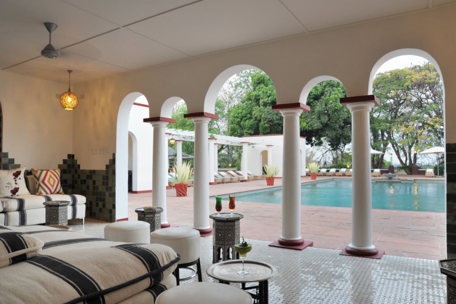 Die stilvoll eingerichteten Zimmer und Suiten, viele davon mit Panoramablick auf die Fälle, bieten Ihnen höchsten Komfort. Wer es besonders exklusiv liebt, wählt eine Suite mit persönlichem Service. Auch kulinarisch erwartet Sie eine Vielfalt: Im traditionsreichen Livingstone Room erleben Sie klassische Eleganz, während das lebhafte Jungle Junction mit afrikanischen Spezialitäten und musikalischen Darbietungen begeistert.