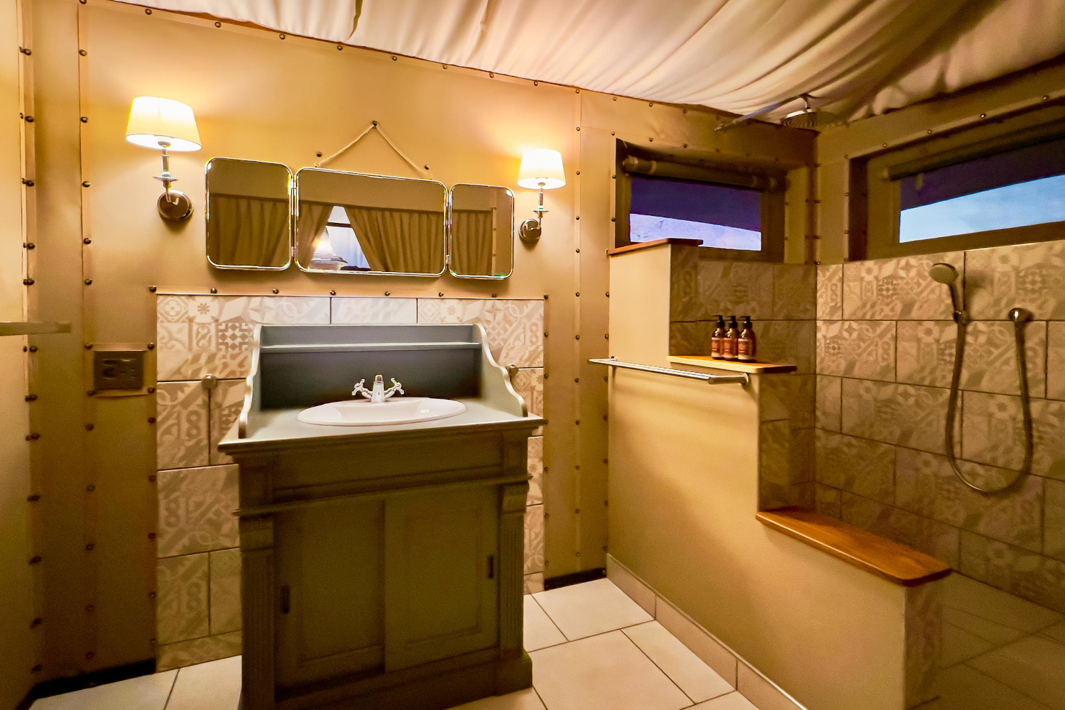In jedem der Zelte erwartet Sie ein bequemes Doppelbett und geräumiges Badezimmer mit Dusche. Die Premiumzelte sind darüber hinaus noch mit einen Minikühlschrank ausgestattet. Es existieren zudem zwei Familienzelte, bei denen das geräumige Premiumzelt über einen Holzsteg mit einem weiteren Zelt mit zwei Einzelbetten verbunden ist und somit Kindern und Eltern genug Platz bietet. Allen Unterkünften gemeinsam ist jedoch die private Veranda mit einem herrlichen Ausblick auf die Landschaft und das Camp.